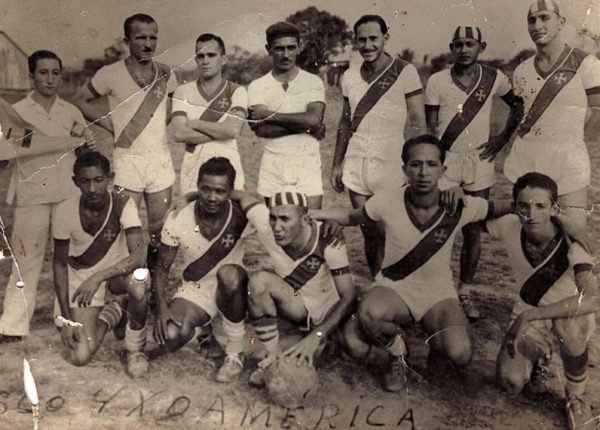 Vasco da Gama (Xapuri) – 1948. Em pé, da esquerda para a direita: Quincas, Zé Samico, Guilherme Lopes, Zé Cardoso, Afonso Zaire, Moisés e Guilherme Zaire. Agachados: Tibira, Bocanegra, Pinheiro, Balanceio e Mundinho. Foto/Acervo Mundinho.