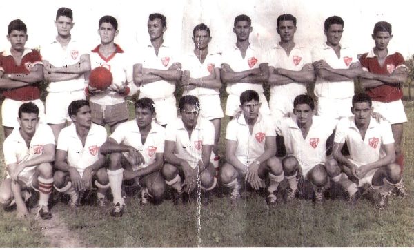 Rio Branco – Primeira metade da década de 1960. Em pé, da esquerda para a direita: Wladimiro Lustosa, Oscar Fecury, Fernando Gama, Campos Pereira, Tenório, Lourival Sombra, Maurício, Tião Lustosa e Raimundinho. Agachados: Cássio, Trinta e Um, Professor Pinho, Touca, Evaldo, Dau e Cidico. Foto/Acervo Francisco Dandão.