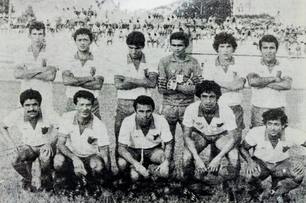 São Francisco – 1985. Em pé, da esquerda para a direita: Djalma, Jorge, Leitão, Almiro, Polanco e Amarildo. Agachados: Bismarck, Zé Gilberto, Fernandes, Aderbal e Dodô. Foto/ Acervo Francisco Leitão.