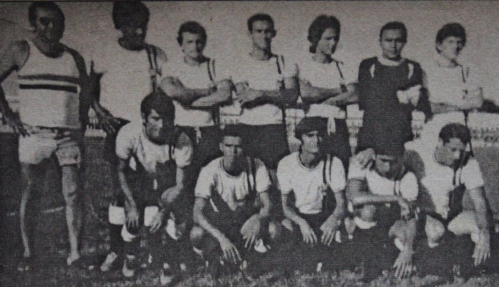 Juventus – 1969. Em pé, da esquerda para a direita: Deca, Carlos Mendes, Dadão, Escurinho, Rômulo e Pope. Agachados: Pingo Zaire, Eliézio, Nemetala, Zé Carlos e Nilson. Foto/Acervo Francisco Dandão.